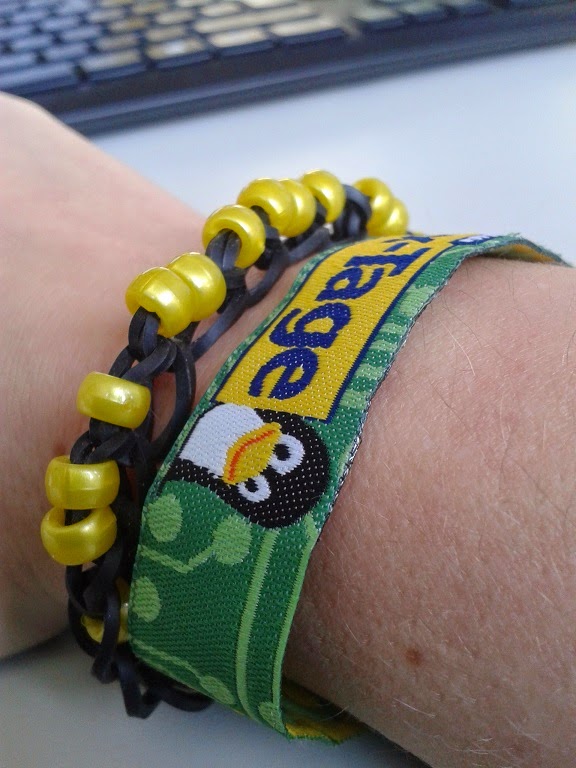 Außerdem gab es unglaublich liebevoll gestaltete Stricktuxe, Androide (oder Androids? keine Ahnung :D) und Co zu bewundern (die Anleitungen gibt es hier ganz im Sinne des OpenSource kostenlos! :D). Bei OpenRheinRuhr, die übrigens tolle OpenSource-Messen organisieren, durfte ich nach einer freiwilligen Spende am (Glücks-)Rad drehen (das ich natürlich umgehend kaputtmachte, zum Glück ließ es sich noch mit Kabelbinder weiterverwenden xD) und gewann ein Schlüsselband. Am Stand von Debian konnte man "Obstkuchen" in Aktion bewundern (ein Raspberry Pi und ein BananaPi^^), und am Stand von Fedora lief wie auch schon im Vorjahr der 3D-Drucker heiß... Außerdem hatte ich besonders interessante Gespräche mit den Bastelfreaks vom Chaostreff Chemnitz e.V., den Jungs von Geany und den Kids von Teckids, die mir ihre tollen Blender-Filme und Roboter zeigten. Am Stand von OpenSUSE wurde ich dann sogar noch von einem Bekannten aus der Allerweltsstadt Freiberg angesprochen ;) Zwischendurch durfte ich sogar mal kurz zoggen - am Stand mit StreetPong im Ampeltaster; den Vortrag dazu (klick) habe ich leider verpasst. Apropos. Ich habe ich mich leider nicht in die Vorträge "Graphik-Kungfoo mit ImageMagick und Co" und "MultiCopter - nur Fliegen ist schöner" setzen können, aber frau ist ja auch nur begrenzt aufnahmefähig. Trotz Multitaskingfähigkeiten ;D Zwischendurch gab es übrigens noch ein Käsebrötchen, ein Stück Rührkuchen und einen unglaublich leckeren und kräfteweckenden Kaffee - an dieser Stelle ein dickes Lob an das Catering-Team!